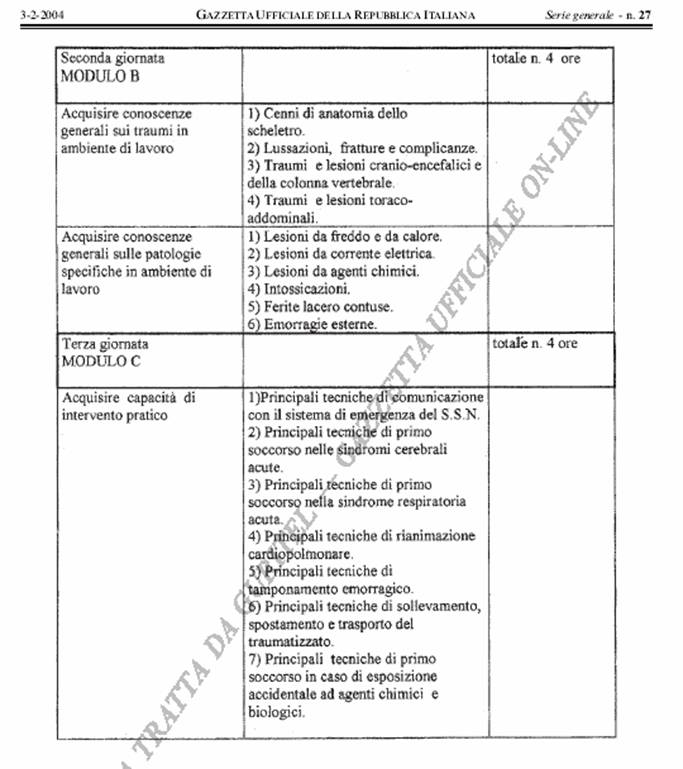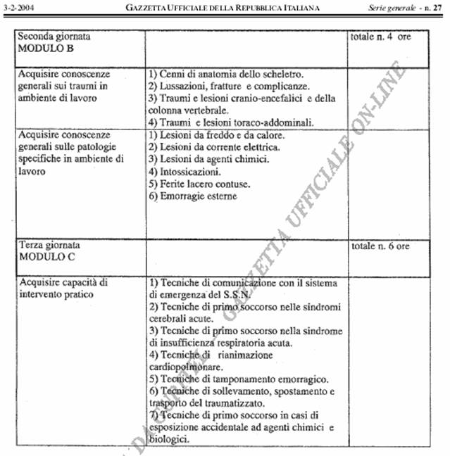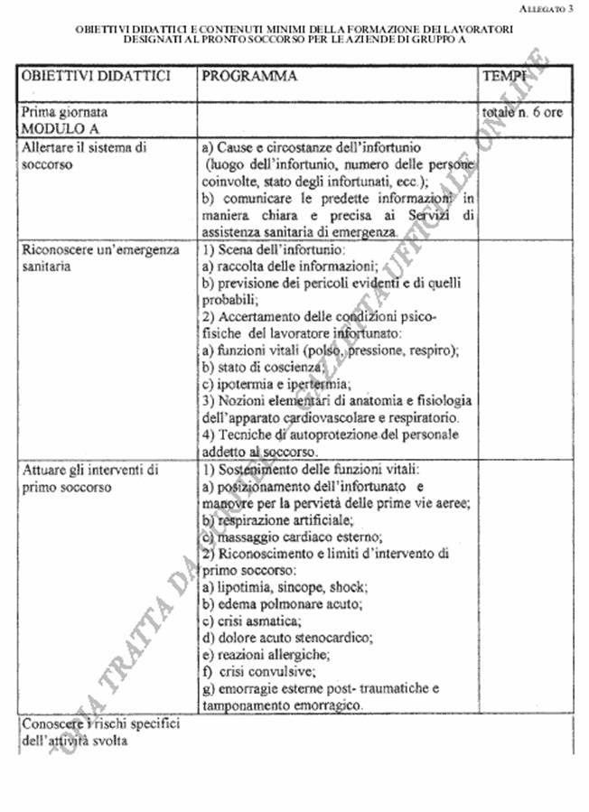 3. Per le aziende o unità produttive di gruppo A i contenuti e i tempi minimi del corso di formazione sono riportati nell'allegato 3, che fa parte del presente decreto e devono prevedere anche la trattazione dei rischi specifici dell'attività svolta.